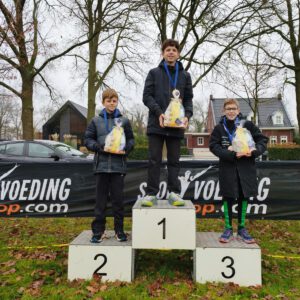 Bij de jongens U14 was er een 3e plek voor Mica Molenaar. Stef Nijzink zat kort achter het podium en werd 5e. Daarachter kwam teamgenoot Nout Overbeek als 7e over de meet. De jongens 10 t/m 12 jaar vochten met name om de 2e plaats, een eind achter een ontketende Daventria-atleet. Ezri Maneschijn eiste hier de 3e plek op. Raf Molenaar werd 5e en Lucas Derksen 7e.