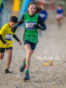 In de categorie U12 kwamen 2 loopsters uit namens het team. Otje Boode wist deze wedstrijd bijzonder knap te winnen. Joëlle ten Hove liep tevens zeer sterk, maar moest genoegen nemen met de 4e plek.