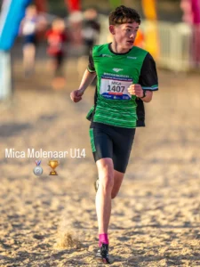 Mica Molenaar liep in zijn wedstrijd bij de jongens U14 naar een uiterst verdienstelijke 2e plek.